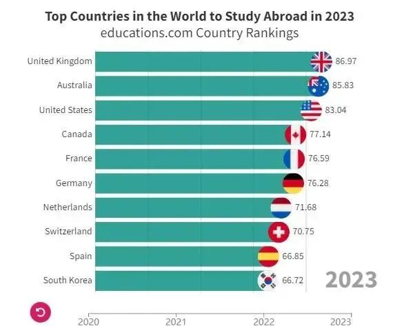 澳大利亚一直是各国留学生的热门申请国家,前段时间全球教育网站发布了 2023年全球十大最佳留学国家排行榜:澳洲名列第二。