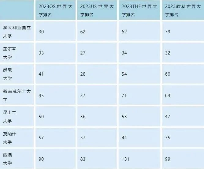 在世界大学排名中,澳洲大学一直都有很好的排名。比如2023QS排名中,澳洲八大有7所大学入围前100。