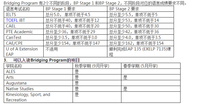 对于国际生来说,申请阿尔伯塔大学,除了递交学校学术成绩单之外,还需要向学校递交雅思或托福或多邻国考试成绩,以向学校展示英语水平和能力。然而由于学生在校期间课业压力较大,时间紧张,再加上疫情导致考位紧张等等原因,很多申请人无法提交满足学校直录要求的语言成绩。针对这样的情况,申请人也不必惊慌,阿尔伯塔大学有专门为国际生提供的语言桥梁课程( Bridging Program ),录取后,学生可以先在语言项目中学习,学习完成后,顺利进入专业课学习。