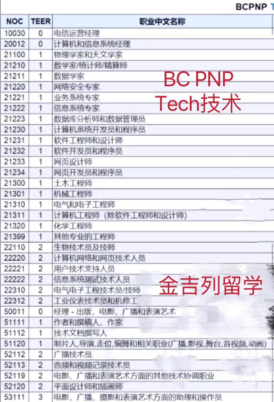 适合人群:BCPNP Tech项目尤其适合在加拿大学习相关专业的留学生(毕业后容易找到BC省本地工作)以及拥有35个特定技术类职业经验的人。