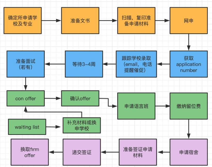 关于申请流程,我们先来了解一下英国留学申请的 三个时间段 。 首轮是在每年的9-12月 ,也是大多数人报名的阶段。准备充分的前提下,越早递交,申请被接受的几率也会越大。 第二轮就是次年的1-4月 ,这个时间段有些专业已经招够了学生、截止申请了,这对某些专业方向非常明确的同学来说,会有点吃亏。 同时,这个时间段也是国内考研出成绩的时候,部分考研失利的同学会转而考虑出国留学,竞争会进一步加大。 接下来的5-9月是最后一次申请机会 , 这时候能剩下来的优质学位少之又少。如果没有合适的项目,一般建议gap一年,做好准备再去申请。 需要准备的材料一般包括:在读证明,成绩单,实习证明,雅思成绩等硬性条件,以及CV、PS等文书材料 , 两者准备完全以后就可以正式递交申请。