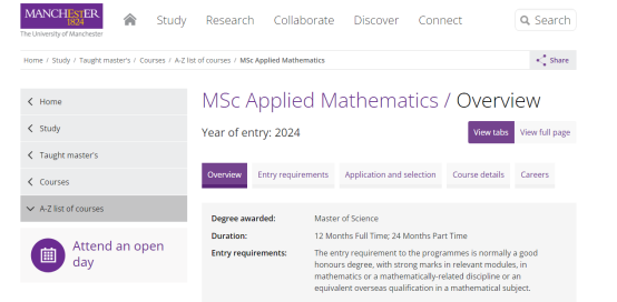 好消息!曼彻斯特大学除了最近新增的硕士课程外,曼彻斯特大学2024FALL恢复了应用数学硕士的入学申请!想要申请的同学一定要抓住机会!