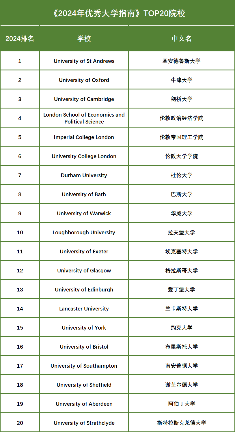 《泰晤士报》和《星期日泰晤士报》“2024年优秀大学指南”的完整获奖名单如下: