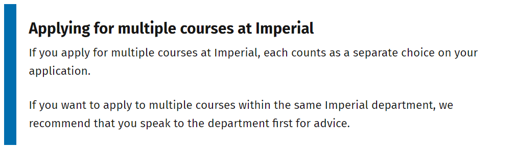 官方表示,如果申请帝国理工的多个本科专业,每一个专业都算作申请中的一个单独选择。