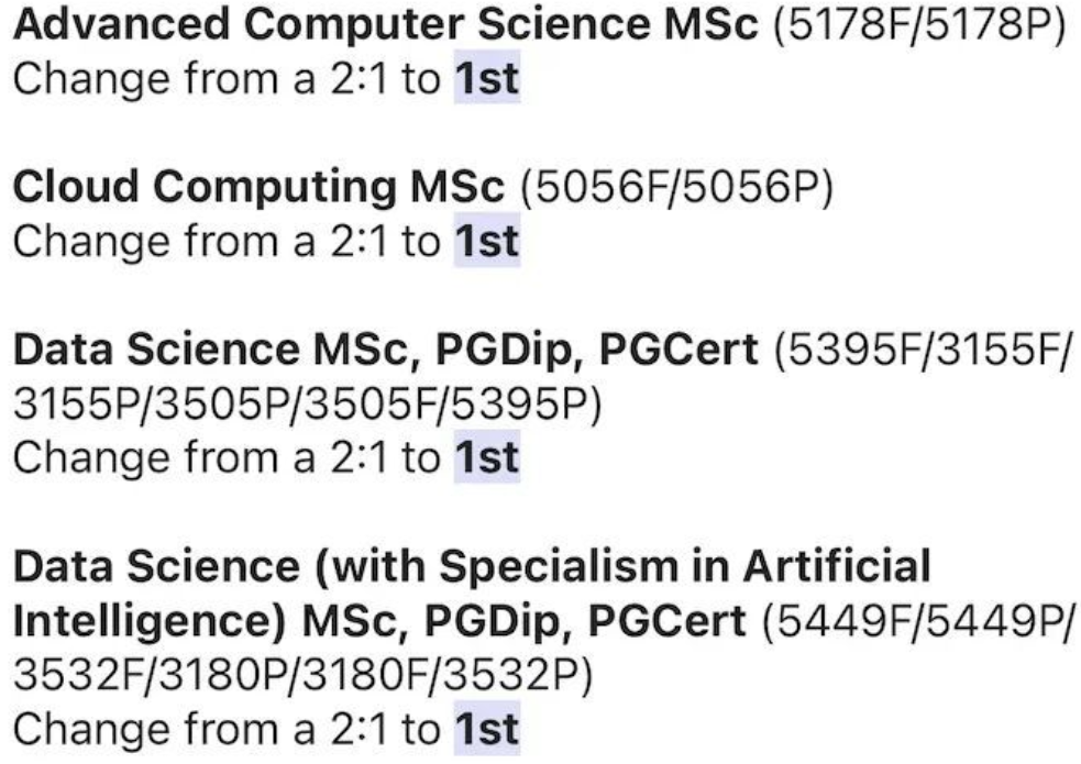 纽卡斯尔大学24Fall硕士录取要求也有所提升, -以下计算机相关专业,从2:1的入学要求调整到一等学位。