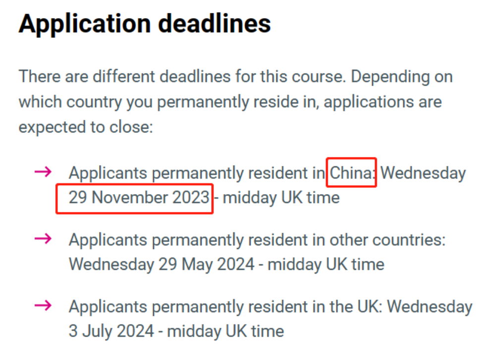 南安普顿大学本周一刚刚开放24Fall硕士申请,大家惊讶的发现,南安几乎所有热门专业 (下图) 将在 11月29日 截止申请, 该DDL仅面向中国大陆学生 ,看起来南安对今年的中国招生依然非常有信心。现在还没准备申请材料的留子们“有福了”