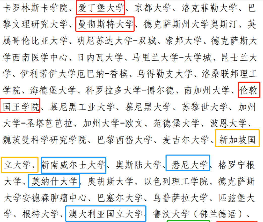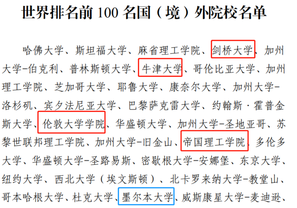 其中,符合要求的世界排名前100名国(境)外院校名单如下: