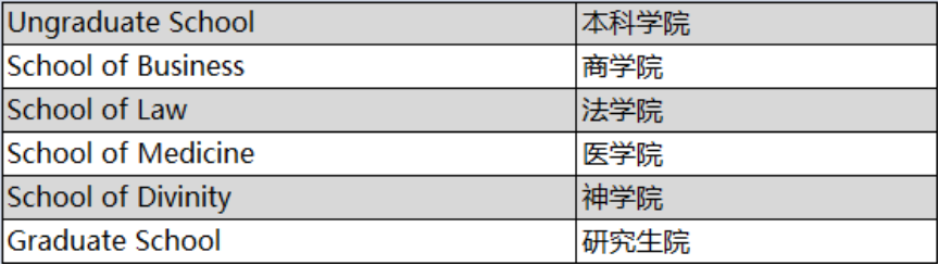 说明:本科生可以申请本科学院(提供45和主修和60个辅修专业)和商学院,其它学院只提供硕士及以上学位。