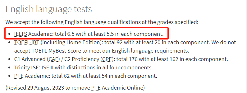 英国其他TOP10院校都不接受申请人提交雅思单项重考成绩: