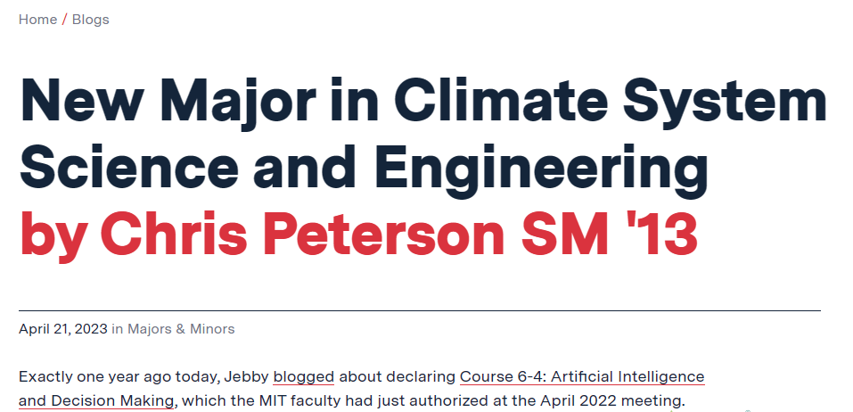 由MIT“土木与环境工程系”和“地球、大气与星球科学系”联合授课,旨在培养学生成为该领域的领导者,以解决全球范围的环境问题。