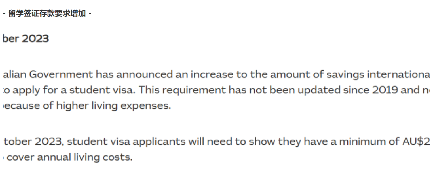 为了证明在澳洲能够维持基本生活所需,申请秋季之后入学的同学们需要在办理学生签证时拥有更多的存款。这一政策调整考虑到了学生在澳洲逗留期间可能面临的较高生活费用。