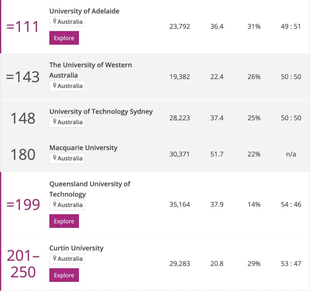 除了墨大和莫纳什外,墨尔本的其它几所大学也都在今年拿出了非常亮眼的成绩! 进步最大的当属斯威本科技大学,去年还处于301~350名区间的它,在今年是直接进步了两个大区间,来到了201~250,全澳第14! 迪肯大学和乐卓博大学也都继续稳定在了251~300的区间! 而另一所进步很大的大学就是我们的R MIT,从去年的301~350名的区间,直接进步一个大区间来到了251~300! 大学在过去一年里的努力,泰晤士它是真的看得见! 在四大排名中,泰晤士一直都是更加关注教学和研究的那一个! 不知道各位澳洲的留学生们,对这次泰晤士给出的排名还满意吗?