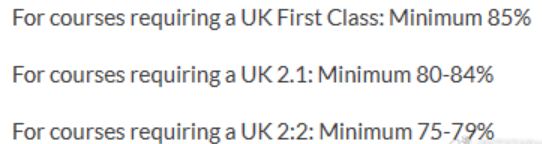 华威大学的硕士录取成绩要求分为三个档次:一等学位、2.1学位和2.2学位。对国内高校背景的申请者, 华威大学将国内高校分为四个层次 ,每个层次对应不同的分数要求,如以985高校为主的第一档的成绩要求如下: