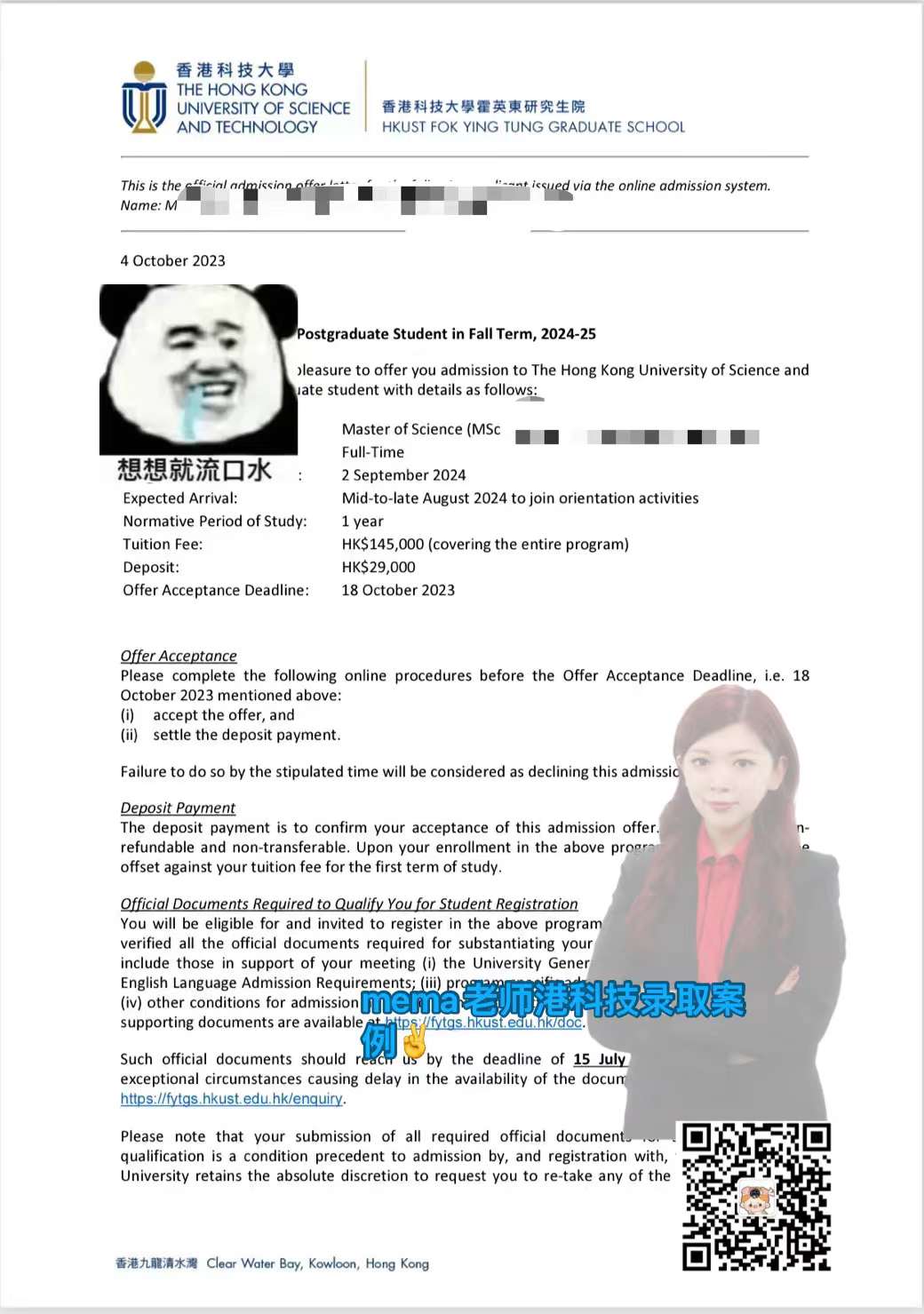 复第工一天 和我jojo师老收到了港技科的offer 邮件