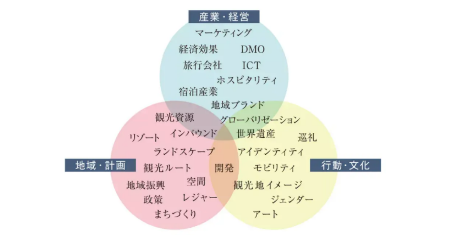观光政策学:研究为了国家、地域的观光振兴所颁布的多样性的政策;与社会中的现实课题相结合,进一步研究观光政策学。