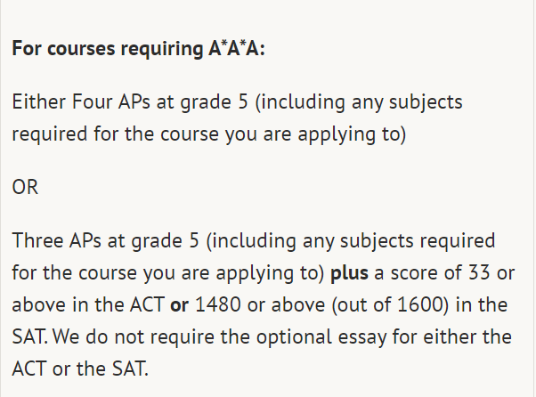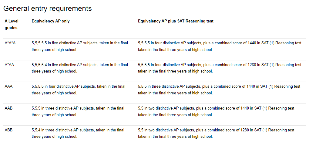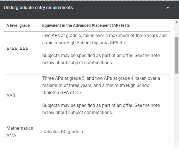 官方先给了粗略的AP考试成绩,但是在文末依旧提示,具体的专业有具体的要求,常规要求是: