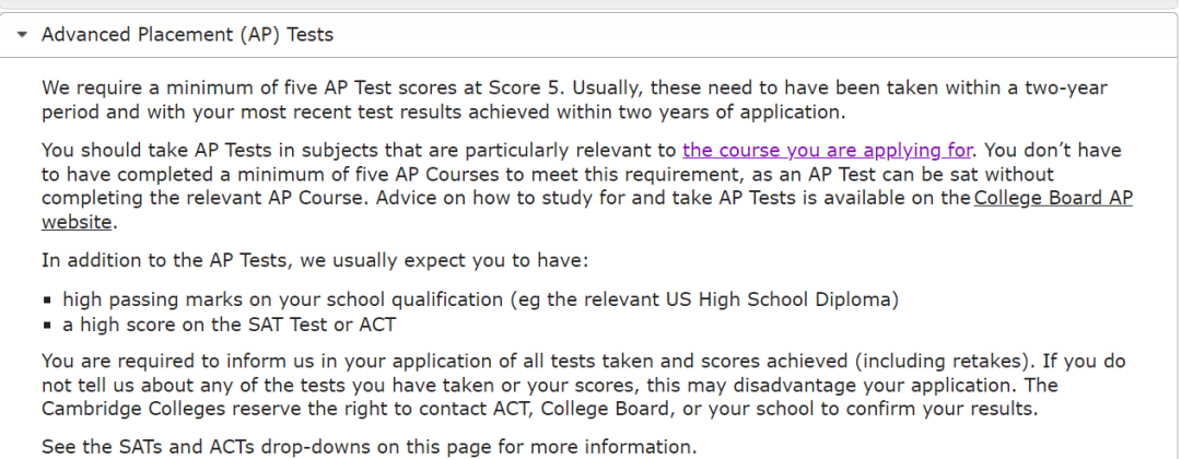 申请者可以在学校官网相应的专业页面进一步查看不同专业的AP科目要求。