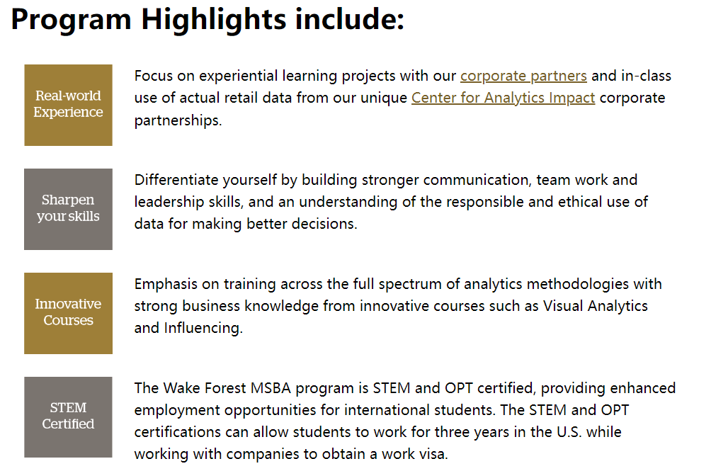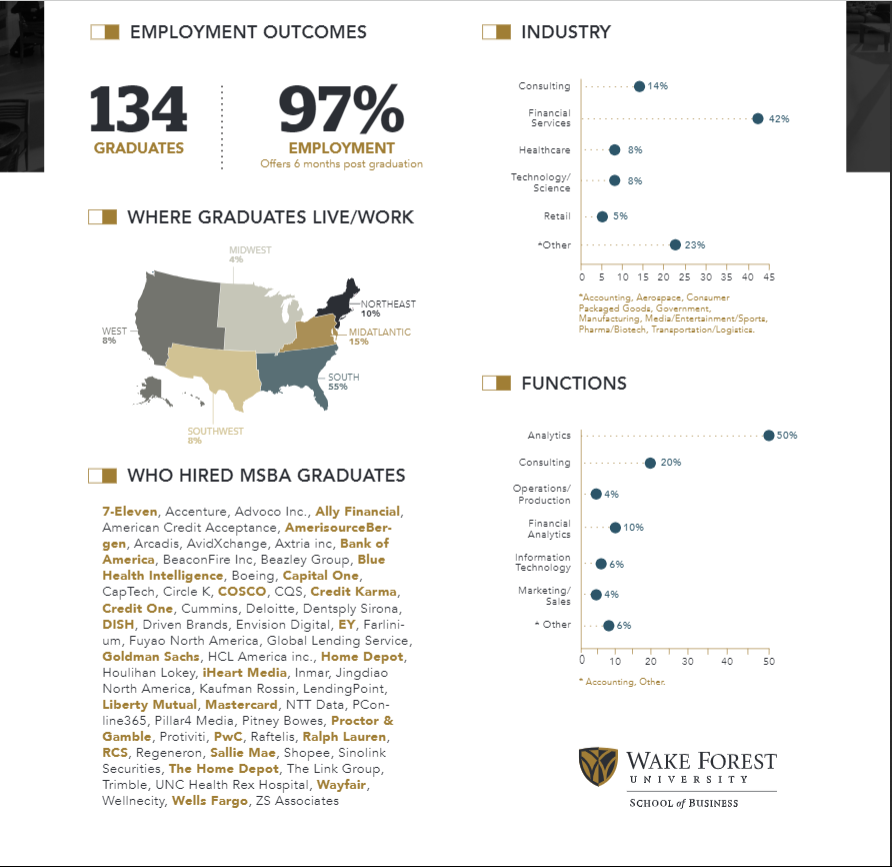 维克森林大学商业分析硕士课程的毕业生将具备顶级雇主所重视的适销对路的技能: