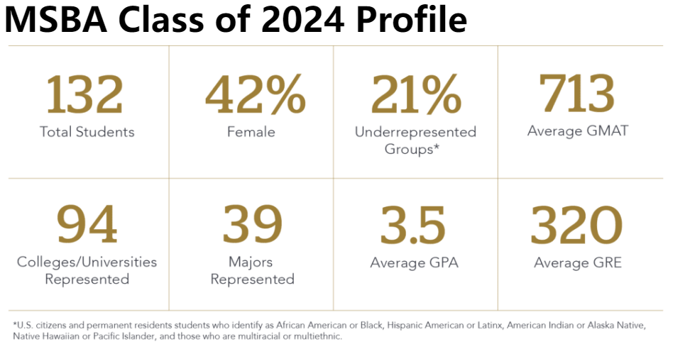 总共入读学生132,平均GPA3.5,平均GAMT分数 713,平均GRE分数320