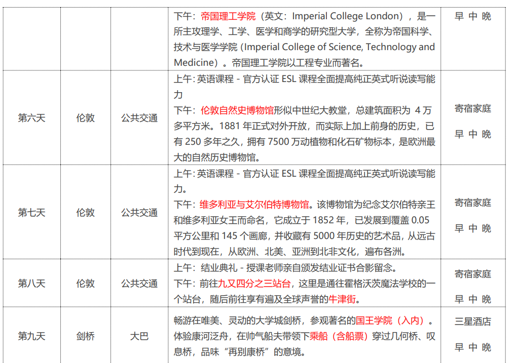 用餐方式:课程期间,寄宿家庭提供三餐; 旅游期间,酒店内早餐,正餐标准团餐八菜一汤/自助餐穿插