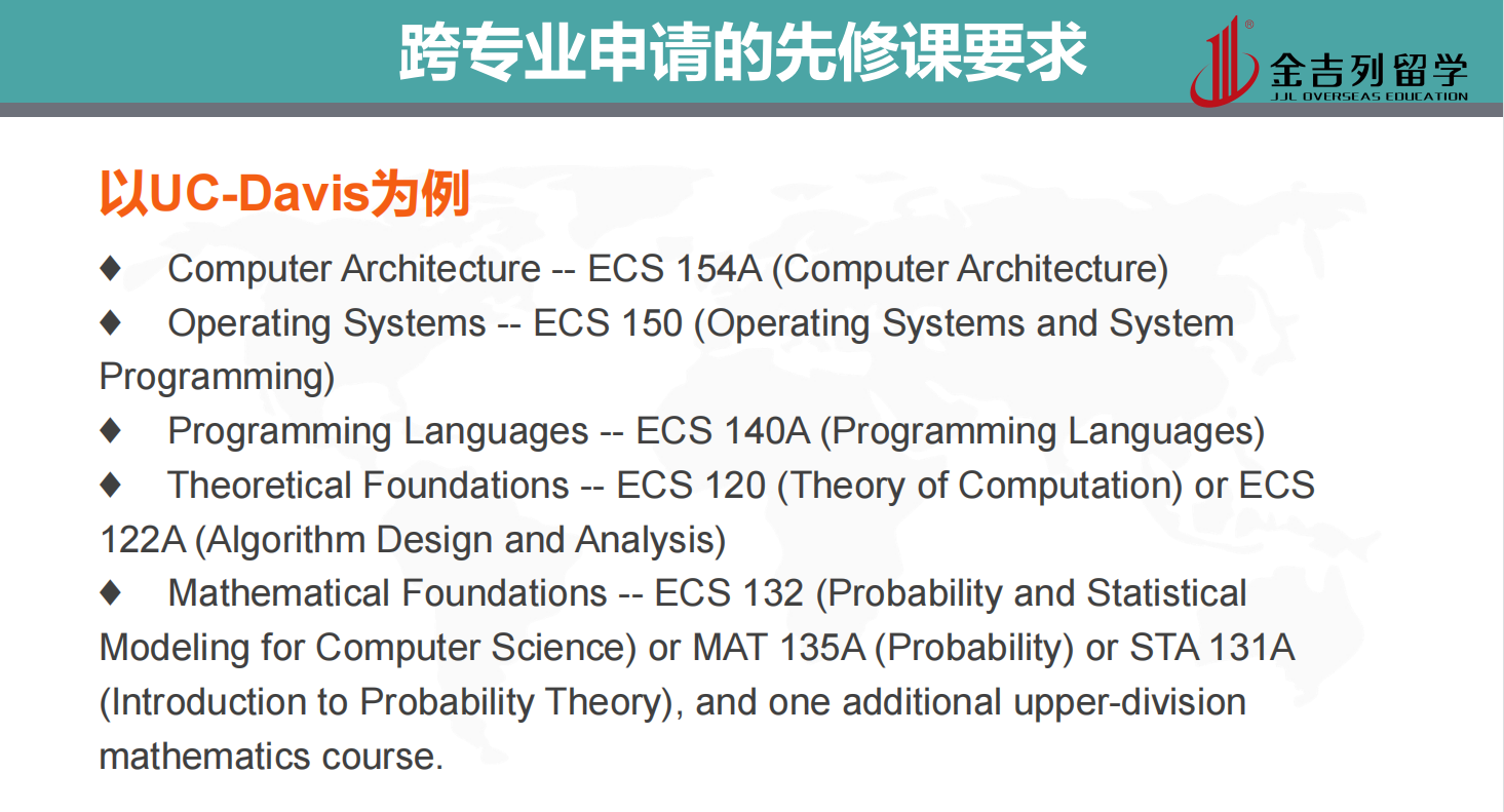 跨专业申请的先修课要求: