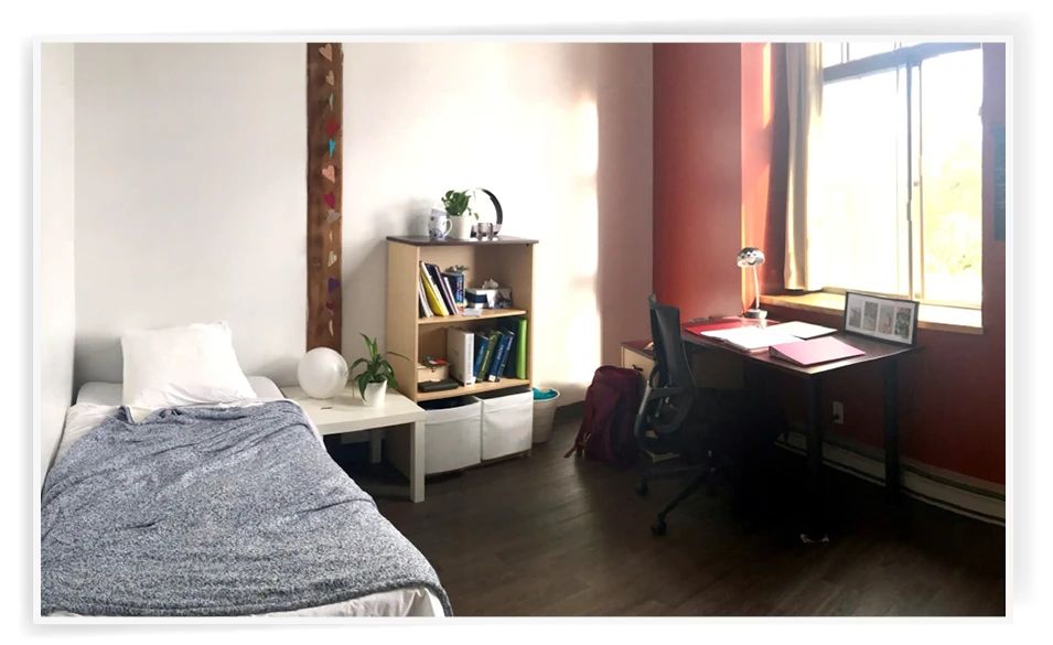 公寓式宿舍都是一人一间,几个人组成一个小公寓,类似于国内的几室一厅的概念。Solin Hall的原身是一家巧克力工厂,厂房的设计使得天花板比较高,玻璃比较多,宿舍整体光线特别好。