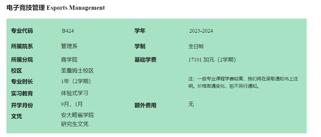该专业的重点将着力于线上和线下电子竞技活动的盈利能力和可行性、品牌扩展、意见领袖和合作伙伴忠诚度相关的商业管理。