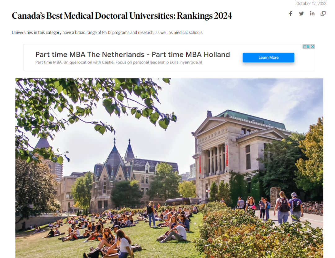 加拿大的医博类大学并不是指这所大学只有医学院很厉害,而是指这所大学有医学院,有PH.D.课程,有广泛的研究项目。加拿大,拥有医学院的大学往往都是顶尖大学,尤其是硕博教育阶段,医博大学的教育优势往往是碾压式的。