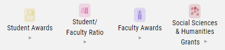 我们来看今年的榜单。榜单同样还是由12个部分组成,分别是:学生得到的荣誉,师生比,教师荣誉,总研究经费/财务预算/各学科拨款,图书馆规模 , 奖学金与助学金金额,学生服务 , 满意度。
