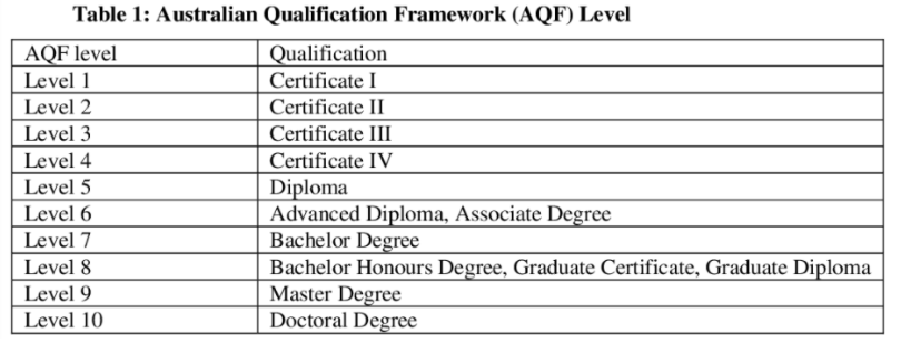我们可以通过澳大利亚学历资格框架(AQF)(下图)进一步了解两者之间的不同。