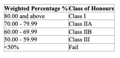 从AQF可以看出,荣誉学士学位(Honours)要比普通学士学位(Bachelor)高一级,比硕士课程(Master)低一级。因此,荣誉学士学位申请门槛要比一般学士学位高。一般只录取前25%的本科学生。学生在完成学业后,将根据成绩最终划分为以下等级: