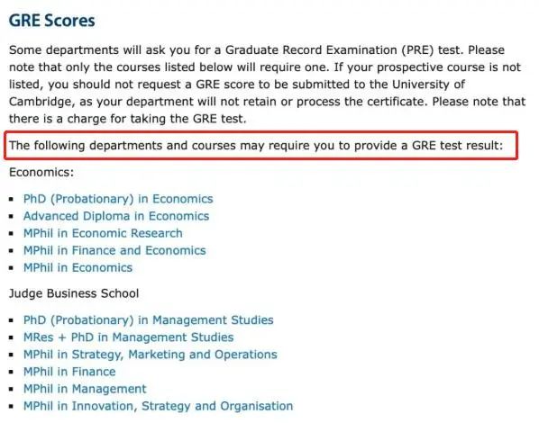 24fall,剑桥大学经济学和商学院的众多专业都要求学生GRE达到80%+,而且大部分商科专业都明确表示,仅接受GRE,不接受GMAT成绩。