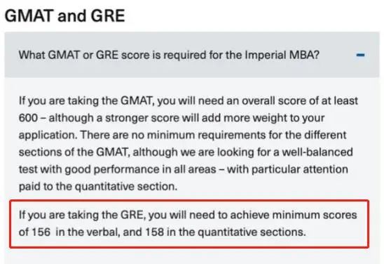 帝国理工学院申请全日制MBA项目必须提供GRE成绩,且Verbal部分最低要求156分,Quant最低需要158分。