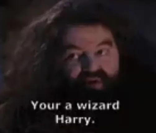 《哈利波特》电影截图,译文“你是一个巫师,哈利”