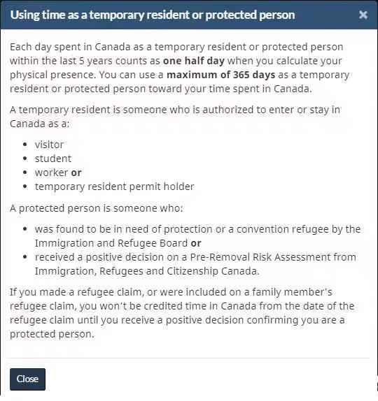 值得一提,临时居民 (Temporary residents) 在过去5年中,在加拿大居住的每一天都可以算作半天,最多可以计算365天。临时居民包括: