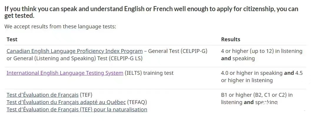 18-54岁入籍申请人需要提交语言成绩来证明自己的英语或法语水平