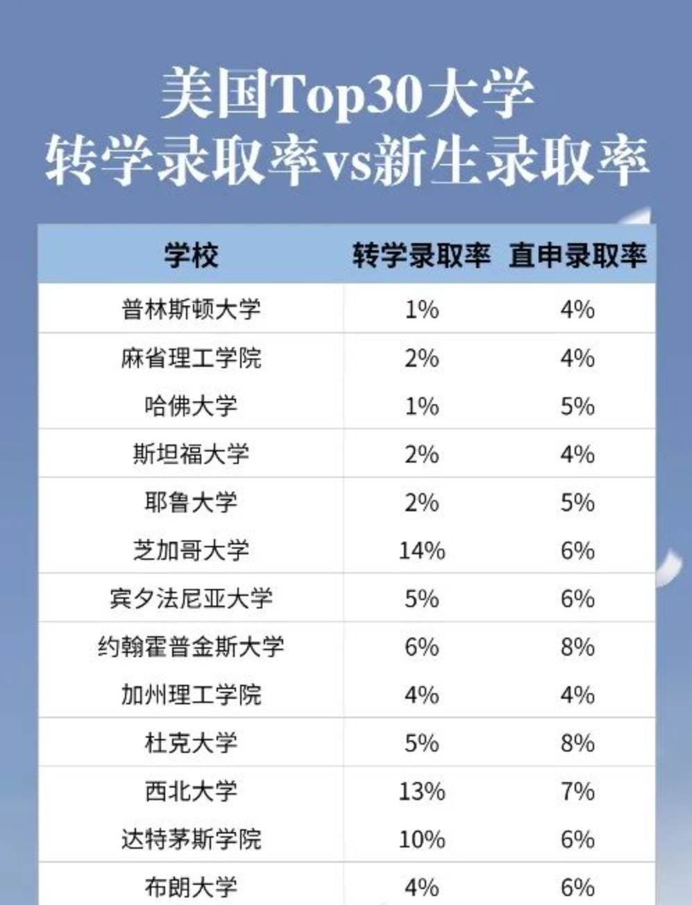 最重要的一点!与直申美国大学本科的新生相比,许多美国大学的转学录取率更高!