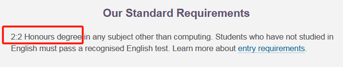 伯明翰大学有一些专业最低录取要求是2:2,例如: