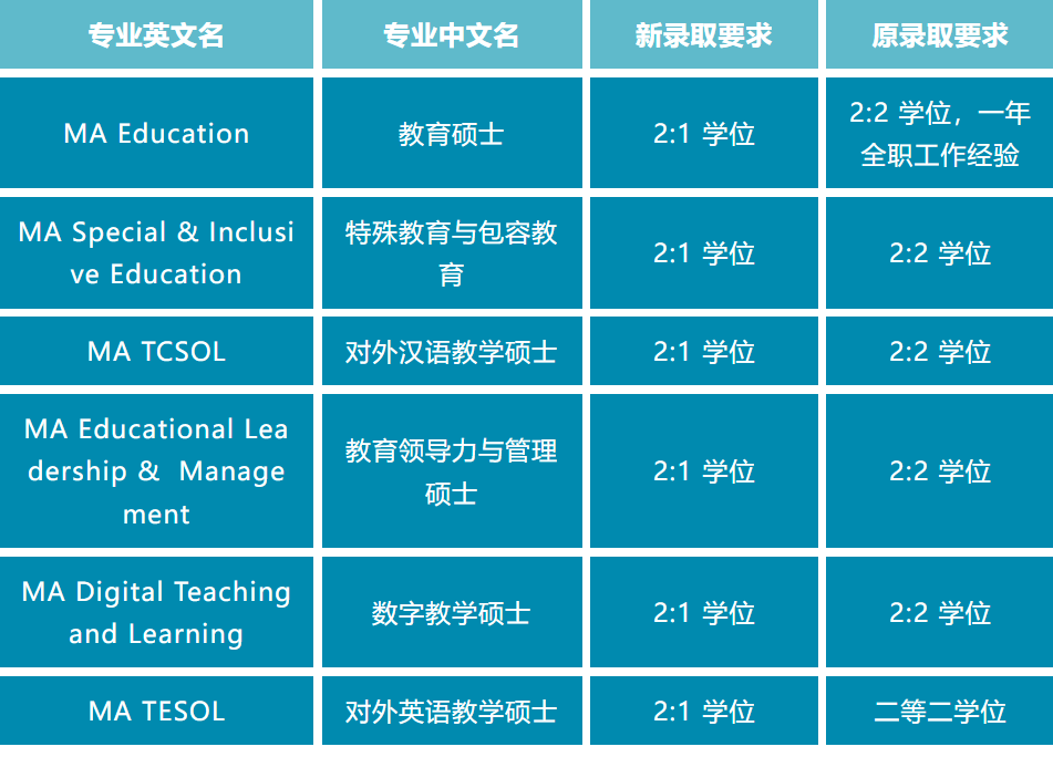 诺丁汉大学教育学院2024申请季开始,部分热门硕士专业提高录取要求,最低入学成绩从原本的2:2提到到2:1。教育硕士取消工作经验要求。