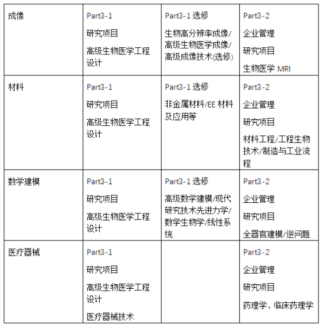 Part3选修课可按成像、材料、数学建模、医疗器械几种方向分。