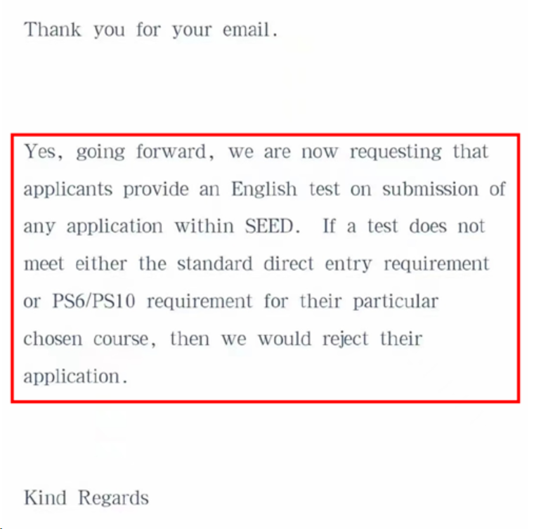 前几天,曼大环发学院一封邮件引发了网络上的疯传。邮件表示:目前 环发学院 的所有专业申请都 必须附带满足直录的雅思成绩 ,或者满足6周/10周语言班要求的语言成绩,否则 申请将被拒绝 !