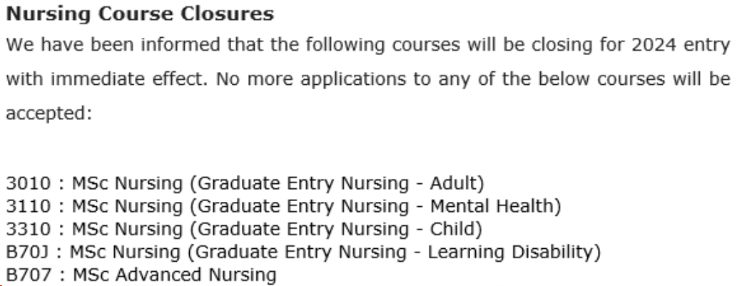 南安普顿大学在9月18日开放申请,却在次日(9月19日)宣布以下专业将于2023年11月29日英国时间中午12点关闭所有来自中国学生的申请。