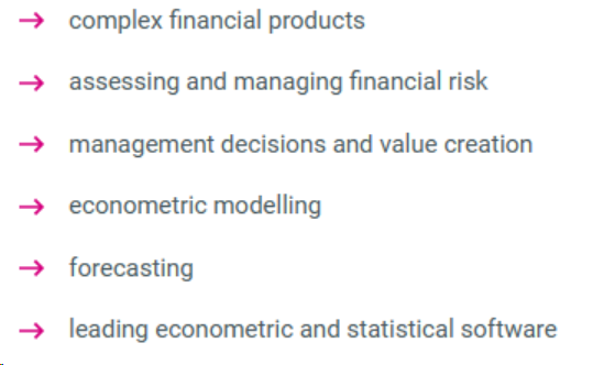 录取要求:英本强二等一(65%)或国际同等学力,有金融、经济学、数学、工程、物理、计算机背景。如果没有相关背景,也可提供英本数学成绩超过60%(或国际同等成绩)的证明。