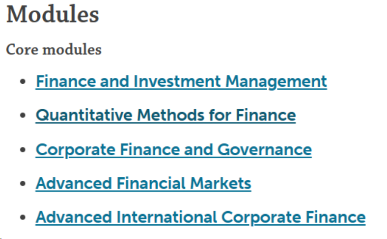 还会让你选择自己感兴趣的选修内容,比如衍生品、金融建模、投资管理、高级公司金融、银行业、信用风险和行为金融等等。