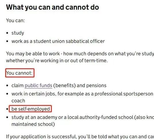 然而,虽然英国学生签证允许学生兼职打工(也有工作时长限制,具体需要看你的学生证类型而定),但是手持英国学生证是不允许自雇的!!!