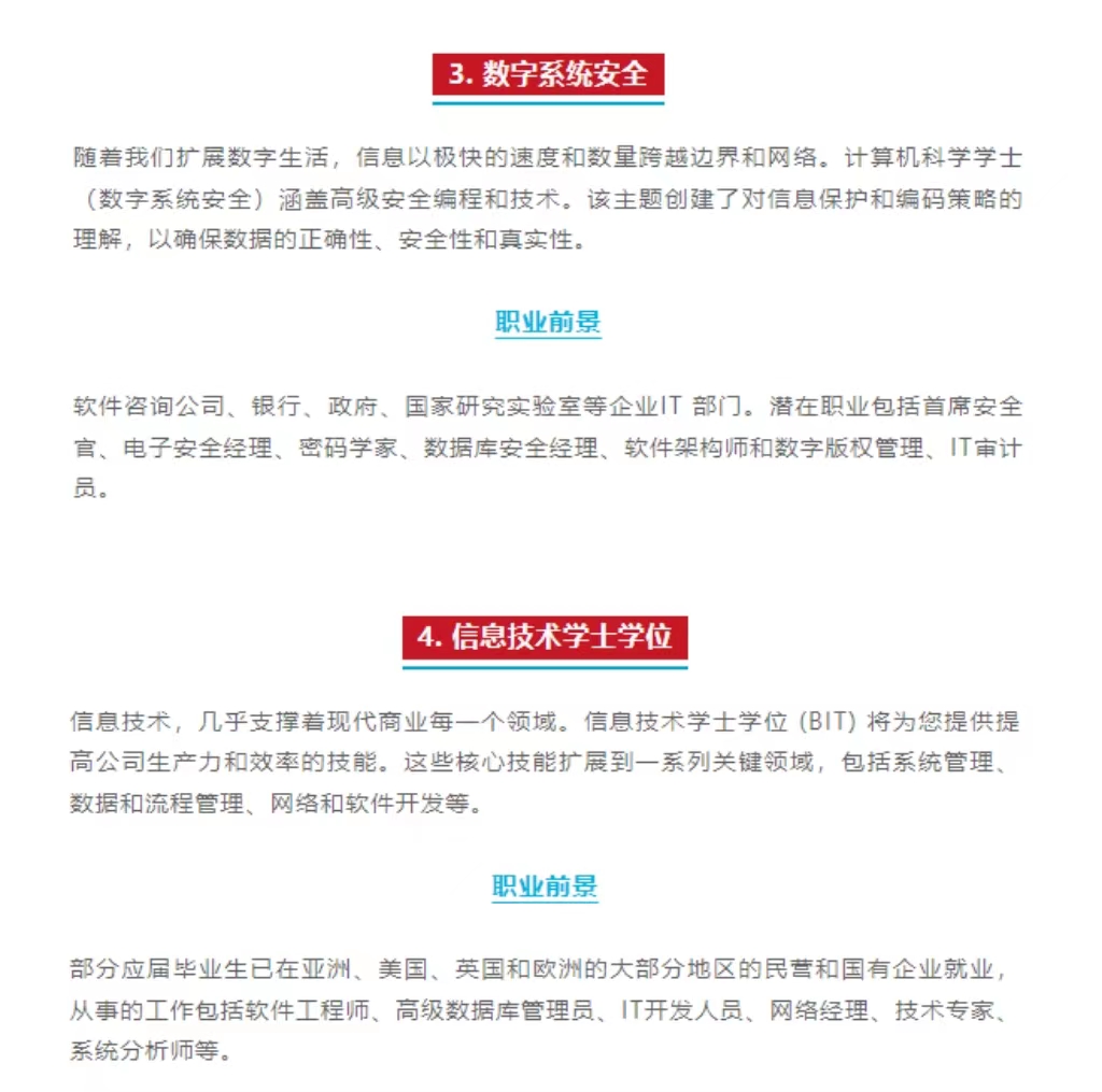课程涵盖了信息技术和计算机科学的各个方面,从基础的编程语言和算法到高级的人工智能和大数据处理技术。如果您对信息技术和计算机科学有兴趣,那么SIM-UOW的这门课程将会是您的最佳选择。