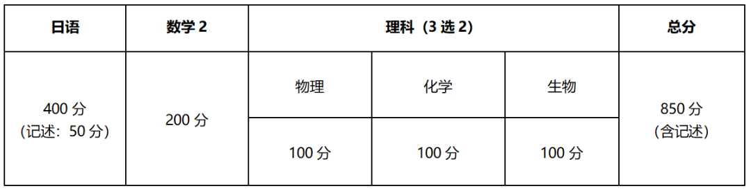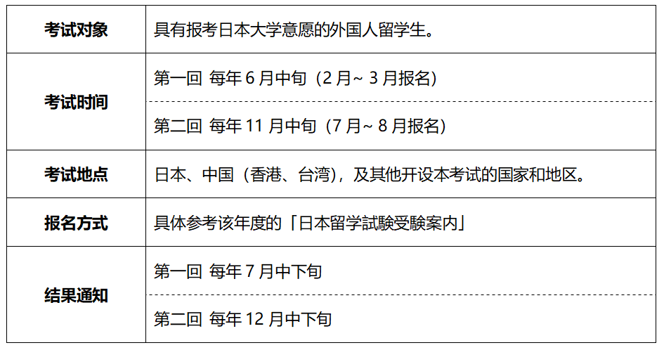 日语科目一般 280 分以上就有本科院校录取了,如果达到 330 分以上还有机会获得文部省的奖学金哦。词汇和语法比日本语能力考试 N2 简单,但有作文题, 30 分钟 400 字,对学生是个难点。