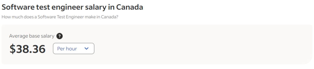 由此,软件和信息系统测试人员在就业市场上也极具发展潜力。 根据indeed的薪酬调查数据显示,软件测试工程师在加拿大的平均时薪高达CAD$38.36。此外, 在去年EE快速通道新增的16个职业中也包含信息系统专员和软件工程师: