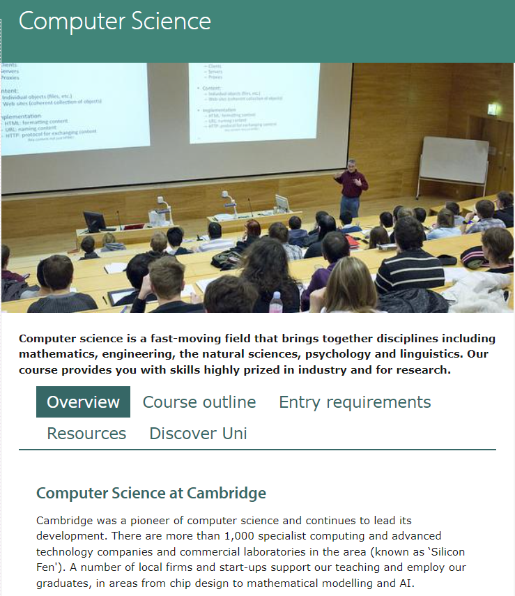 剑桥大学CS专业课程广泛深入,涵盖了现代计算机科学所有方面,以及经济学,法律和商业基本理论和基础。学生还将发展实用技能,例如编程(各种语言,例如OCaml,Java,C / C++,Prolog)和硬件系统(例如芯片设计)。
