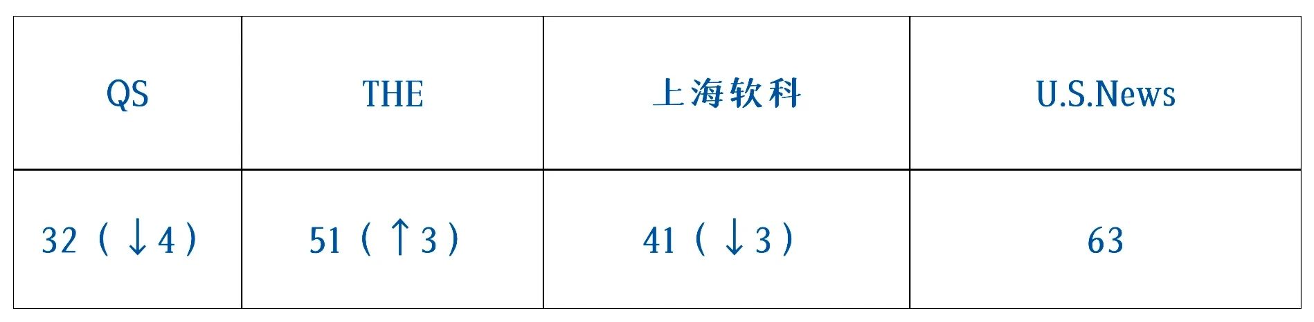 曼彻斯特大学在四大世界排名中位置一直居于50左右